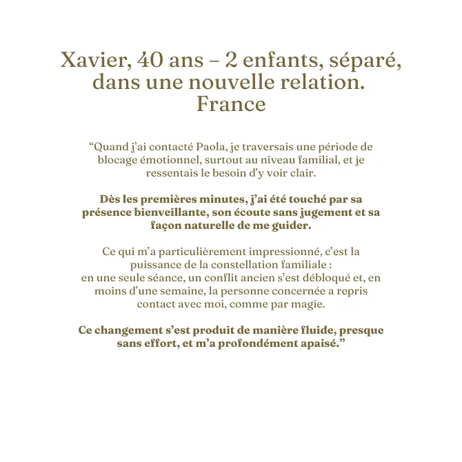 Je suis facilitatrice certifiée en Constellations Systémiques et Familiales — un outil puissant qui permet de mettre en lumière ce qui agit en nous de manière invisible: les loyautés inconscientes, les schémas hérités et les dynamiques de « blind love » qui nous poussent souvent à répéter des histoires qui ne nous appartiennent plus.