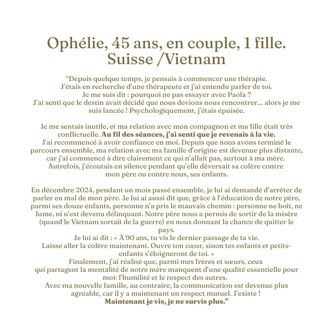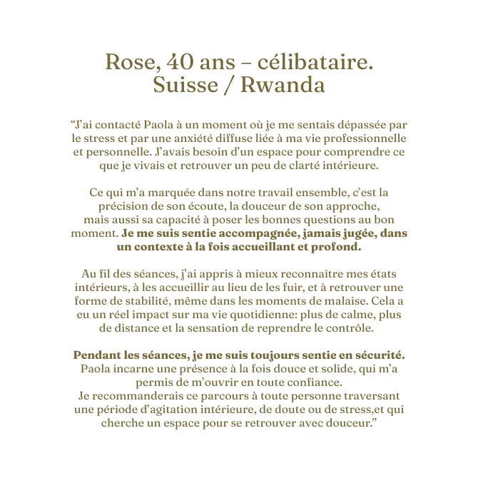 Je viens d’un monde professionnel exigeant, fait de hauts standards, de performance et de responsabilité. Je sais bien ce que cela signifie de tout maintenir debout — travail, famille, relations — tout en se sentant vide à l’intérieur.